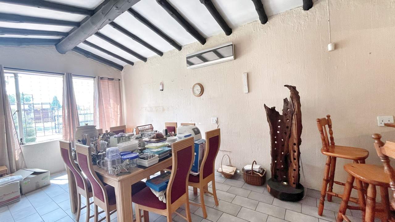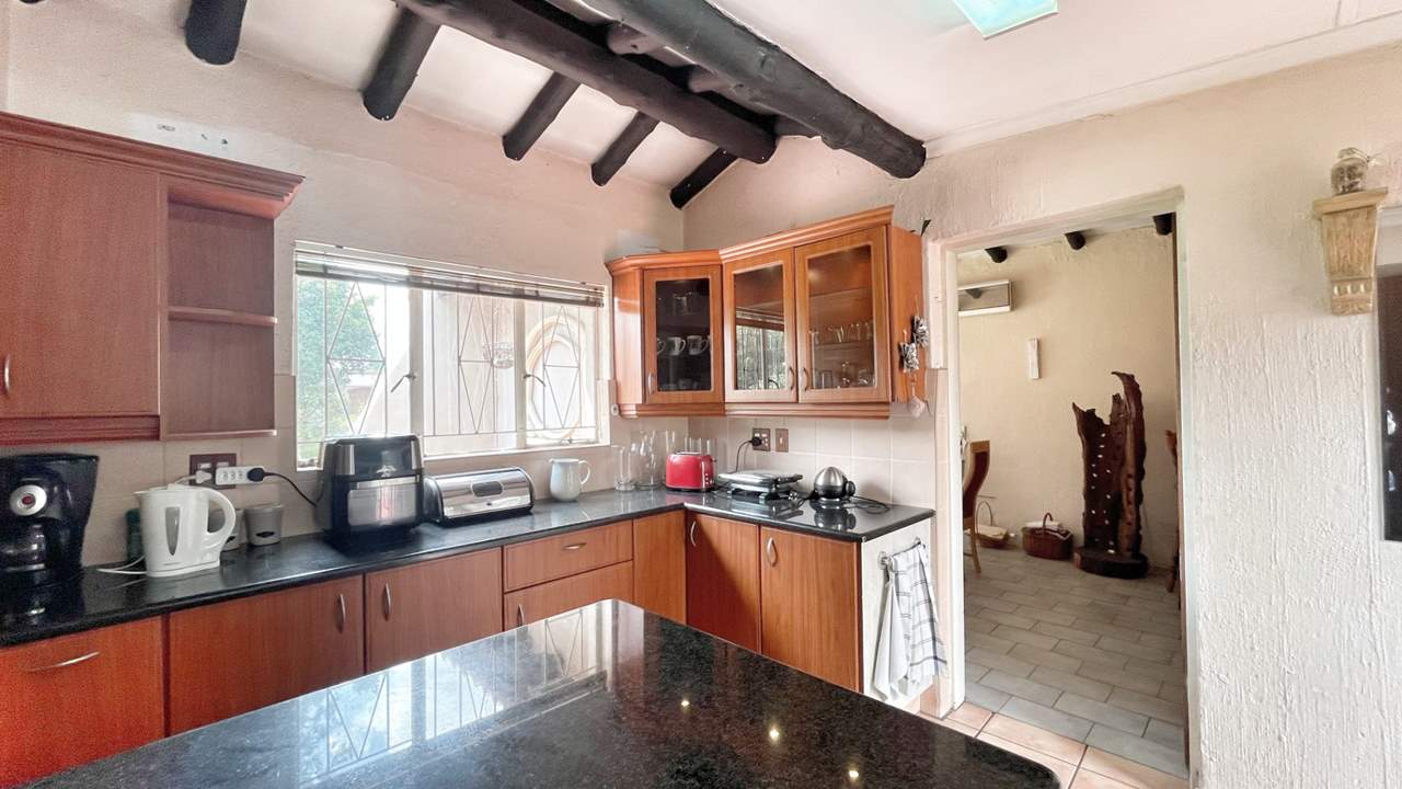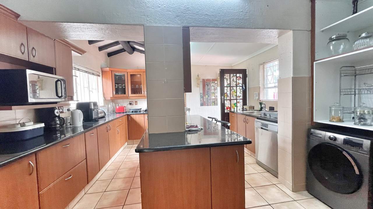 As you enter the property, you are welcomed by a beautifully maintained garden that creates a warm and inviting first impression. Stepping inside, a huge entrance hall greets you, large enough to be used as an additional living area. To the right, the main lounge flows effortlessly onto an enclosed lapa with built-in bar and braai, overlooking the pool and tranquil garden with feature pond — the ideal setting for relaxing weekends and entertaining guests.